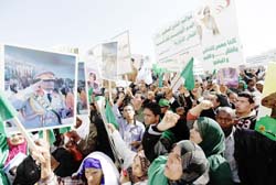 شهدت مدن ليبية عدة اشتباكات ومواجهات سقط فيها عدد من الضحايا، عندما نزل المئات من الليبيين الى الشوارع استجابة لدعوة من معارضين الى جعل امس الخميس "يوم غضب" احتجاجا على نظام العقيد معمر القذافي الحاكم منذ قرابة 42 سنة. ورد النظام على التظاهرات بانزال المئات من أنصاره في مسيرات دعم للقذافي في العاصمة طرابلس. واكدت المعارضة مقتل عشرة اشخاص في تظاهرات الاحتجاج خلال الساعات الـ24 الاخيرة في ليبيا. وتحدثت مواقع الكترونية معارضة عن مقتل ستة اشخاص في بنغازي في شرق ليبيا في مواجهات دارت بين متظاهرين مناهضين للنظام وقوى الامن، بينما قتل اربعة اشخاص في تظاهرات مماثلة الاربعاء في مدينة البيضاء في شرق البلاد ايضا.