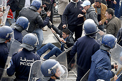 ونجح عناصر الشرطة المسلحين بالدروع والعصي في إبعاد انصار التجمع المنضوين تحت راية التنسيقية الوطنية للديموقراطية والتغيير الى واجهة البحر القريبة. وأنشئت التنسيقية الوطنية للديموقراطية والتغيير قبل شهر لكنها ما لبثت أن انقسمت جناحين. وتجمع نحو عشرين شابا يحملون صور الرئيس عبد العزيز بوتفليقة وهم يهتفون باسمه ويرفعون لافتة كتب فيها: "الجزائريون بوتفليقيون ويرفضون تنسيقية الطماعين"، غير ان الشرطة فصلت ما بين الطرفين ومنعت وقوع اي مواجهة.