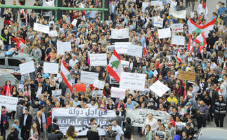لم يعرف هؤلاء الهدوء طوال فترة التظاهر ولم يتوقفوا عن اطلاق الهتافات الداعية الى اقامة الدولة العلمانية، ورددوا "الشعب يريد اسقاط النظام" و"دوس دوس على الطائفية والفساد" و"شو طائفتك، ما خصّك". وانشد عدد من الشيوعيين نشيد حزبهم "جايي مع الشعب المسكين" ورددوا اغاني للشيخ إمام ومرسيل خليفة، فيما ردد آخرون "ثورة ثورة، الشعب يريد اسقاط النظام" وحملوا الاعلام اللبنانية ولافتة ضخمة تحمل شعار التظاهرة. وقرابة السادسة وصلت التظاهرة الى قبالة مؤسسة الكهرباء حيث انشد المتظاهرون النشيد الوطني ثم تلوا بيانا دعوا فيه الى اسقاط النظام واقامة دولة مدنية، ورفضوا الاقتتال الداخلي والحروب الاهلية. وكذلك وزعت بيانات تحمل توقيع "حلم لبنان، حرية – لا طائفية – مدنية"، دعت الى الاعتصام يوم الجمعة المقبل في الحادية عشرة قبل الظهر في منطقة عين المريسة للمطالبة بدولة غير طائفية.