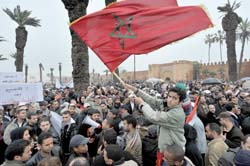 In the capital Rabat, some people in the crowd waved Tunisian and Egyptian flags in recognition of the popular uprisings that overthrew the two countries’ presidents. At least 5,000 people marched across central Rabat, according to Reuters reporters.