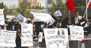 The opposition supporters claimed during Monday's protest that Washington is showing less support for the revolt in Bahrain than it did for the uprisings in Tunisia and Egypt that ousted the countries' presidents.
