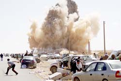 RAS LANUF, Libya: Explosions thudded in the desert and smoke coiled into the sky. Each time, a chaotic band of Libyan rebels manned anti-aircraft batteries to unleash a deafening barrage of retaliatory fire.