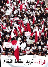 ولا يزال آلاف يعتصمون في مخيمات بدوار اللؤلؤة في المنامة حيث يطالب كثير منهم بإطاحة الأسرة الحاكمة في البحرين.