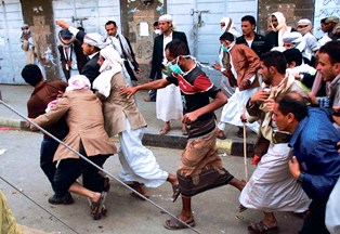صنعاء - من أبوبكر عبدالله: أثار اقتحام وحدات من الجيش اليمني ساحة التغيير حيث يتجمع منذ أسابيع آلاف الشبان المحتجين المطالبين بإسقاط النظام عاصفة احتجاجات عمت المحافظات اليمنية بعدما اسفرت العملية عن سقوط خمسة قتلى، اثنان منهم في صنعاء وآخران في عدن، بينما قتل تلميذ في المكلا بمحافظة حضرموت، الى أكثر من 1283 جريحا. وانخرط عشرات الآلاف من المحتجين وأنصار المعارضة ليلا في تظاهرات جابت الشوارع تندد بالاعتداء على المعتصمين وتطالب بإسقاط النظام ومحاكمة الرئيس علي عبدالله صالح وأركان حكومته حيال ما وصفوه بأنه "مجازر يرتكبها النظام بحق المتظاهرين سلميا".