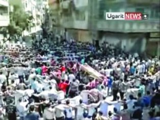 وشيعت حمص امس ضحايا سقطوا اول امس الجمعة وشهد مأتم الفتى رامي يحي عروب (14 سنة) الحشد الأكبر الذي قدر بحوالى 20 ألف شخص. وبثت المعارضة السورية مشاهد على موقع «يوتيوب» عن انتشار الدبابات والمدرعات عند دوار باب الدريب في حمص الذي شهد انتشار دبابات ومدرعات للجيش ومطاردة ملاحقين واعتقالات في المنازل المجاورة. وأعلن مصدر عسكري سوري مسؤول أمس أن «مجموعة إرهابية مسلحة» هاجمت حافلة مبيت تابعة للفرن العسكري قرب دوار الفاخورة في محافظة حمص (وسط البلاد).