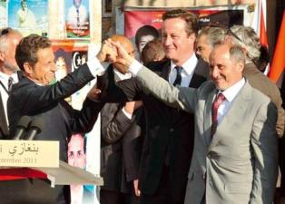 قدم الرئيس الفرنسي نيكولا ساركوزي ورئيس الوزراء البريطاني ديفيد كاميرون دعما عسكريا وسياسيا للسلطات الليبية الجديدة في زيارتهما التاريخية لليبيا، واعدين بالافراج عن مزيد من الارصدة الليبية المجمدة ومتعهدين استكمال مهمة حلف شمال الاطلسي الى حين السيطرة على المعاقل المتبقية للزعيم الليبي العقيد معمر القذافي. وفيما أكد الزعيمان الغربيان عزمهما على تعقب القذافي، اعلن رئيس "المجلس الوطني الانتقالي" الليبي مصطفى عبد الجليل ان الحلفاء في الحرب لهم الأولوية في أي صفقات مستقبلية مع ليبيا.