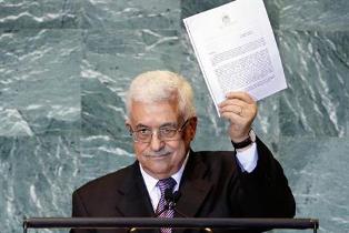 To another round of applause, he held up a copy of the formal membership application and said he had asked U.N. chief Ban Ki-moon to expedite deliberation of his request to have the U.N. recognize a Palestinian state in the West Bank, Gaza and East Jerusalem.