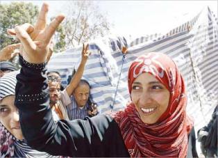 Karman, 32, an Islamist journalist dubbed the “Mother of the Revolution,” has been a key figure in protests in the capital Sanaa this year. “This is a victory for the Arab Spring in Tunis, Egypt, Libya, Syria and Yemen,” she told Reuters. “This is a message that the era of Arab dictatorships is over.”