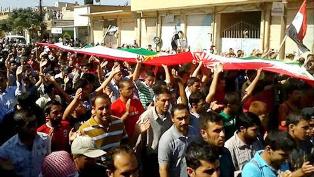 British-based Syrian Observatory for Human Rights said at least two people were killed and three wounded when the funeral came under fire. It said at least 50,000 people had turned out for the funeral.