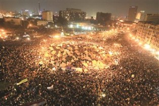 استعاد ميدان التحرير روح الثورة المصرية، بعدما شهدت مليونية «للثورة شعب يحميها» التي نظمها معارضو الرئيس محمد مرسي أمس حشداً استثنائياً أربك حسابات الرئاسة التي يبدو انها نقلت رهانها من ضعف المعارضة وشق صف القضاة إلى الإسراع بتمرير مشروع الدستور الذي تعده جمعية تأسيسية لم يعد في صفوفها سوى الإسلاميين. وأثبتت مليونية أمس التي رافقتها تظاهرات حاشدة في محافظات عدة، قدرة القوى المدنية على الحشد المليوني في مواجهة الإسلاميين، وعدم تأثر غالبية المصريين بالشعارات الدينية. واستقطب ميدان التحرير مئات الآلاف من المتظاهرين المعارضين لإعلان مرسي، وهتفوا للمرة الأولى منذ انتخابه رئيساً: «الشعب يريد إسقاط النظام». وفي وقت ألغت جماعة «الإخوان المسلمين» تظاهراتها التي كانت مقررة أمس في القاهرة لأسباب متضاربة، تكررت الصدامات الأهلية بين معارضي مرسي ومؤيديه في مدن عدة خصوصاً المحلة والاسكندرية والغربية، وسقط فيها عشرات المصابين. وظلت الأوضاع الميدانية ملتهبة، وبدا أن الفرقاء السياسيين اختاروا طريق التصعيد بلا أفق. وأطبق صمت لافت على المؤسسات الحاكمة، وسط تصاعد لنبرة المطالب في الميدان يغذيه التزايد اللافت للحشد. وفشلت اجتماعات عدة في الوصول إلى حل للأزمة، إذ انتهى اجتماع لمساعدة الرئيس باكينام الشرقاوي ومستشاره سيف عبدالفتاح مع ممثلين لـ «جبهة الإنقاذ الوطني» التي تضم قوى المعارضة الرئيسة، من دون التوصل إلى حل، بحسب رئيس حزب «الوفد» السيد البدوي. كما فشل اجتماع عقده شيخ الأزهر أحمد الطيب وأعضاء منسحبون من الجمعية التأسيسية في محاولة لإعادتهم إليها في التوصل إلى أي اتفاق. وكشفت مصادر مطلعة لـ «الحياة» أن مؤسسة الرئاسة تراهن على إبقاء الوضع الحالي حتى الأحد المقبل، وهو تاريخ نظر المحكمة الدستورية العليا في دعويين قضائيتين بحل مجلس الشورى والجمعية التأسيسية للدستور، كي تحكم بانقضاء الدعوى وفقاً للإعلان الدستوري، ومن ثم تتمكن الجمعية من إتمام عملها وتسليم مسودة الدستور إلى الرئيس لطرحها على استفتاء وحل الجمعية. وقال القيادي في «جبهة الإنقاذ الوطني» عمرو موسى لـ «الحياة» إن ما حدث «يثبت أن هناك معارضة شديدة وكبيرة وساحقة للإعلان الدستوري تستوجب إعادة النظر فيه وإلغاءه»، مشدداً على التزام الجبهة «بعدم فتح مفاوضات مع أي جهة قبل إسقاط الإعلان، علماً بأنه لم يتصل بنا أحد». في المقابل، شدد الناطق باسم «الإخوان المسلمين» محمود غزلان على رفض سحب الإعلان الدستوري. وقال لـ «الحياة» بعد اجتماع لقيادات في الجماعة مع قيادات جماعة «الدعوة السلفية» و «الجماعة الإسلامية»: «لا يمكن سحب الإعلان الدستوري إطلاقاً... والجماعة لم تقرر موعداً لنزول الشارع بعد». واتجه القضاة إلى تصعيد بعد أن علقت غالبية المحاكم عملها. وتحدث نادي القضاة عن وصول نسبة المحاكم التي انضمت إلى الإضراب إلى «نحو 95 في المئة» بانتظار قرار الجمعية العمومية لمحكمة النقض، وهي أعلى محكمة في مصر، اليوم. وبدأ قضاة اعتصاماً مفتوحاً في مقر ناديهم في القاهرة اعتباراً من أمس. وأصدر القضاء الإداري بياناً شديد اللهجة رفض فيه ما طرح عن إصدار الرئاسة مذكرة شارحة للإعلان الدستوري، معتبراً أن اللجوء إلى تلك الخطوة «إجراء مبتدع وغريب وغير مسبوق ولا ينتج إلا عدماً». وقال مجلس الدولة الذي يمثل القضاء الإداري المعني بالأساس بنظر الطعون في قرارات السلطة التنفيذية، إن «الإعلان الدستوري صدر من غير مختص، ومن لا يملك سلطة الإصدار لا يملك سلطة التفسير أو الإيضاح». وأضاف في بيان ان «القول بأن تحصين إعلانات وقوانين وقرارات الرئيس من رقابة القضاء مقصور على الأعمال المتعلقة بالسيادة (حسب ما أعلنت الرئاسة)، هو قول صادر عن افتقار شديد لاستيعاب المفهوم الصحيح لأعمال السيادة». وأشار إلى أن «غصب السلطة والاعتداء على القضاء وسلب اختصاصاته والخروج على الشرعية الدستورية وتكريس حكم الفرد لا يبرره أن يكون لمدة موقتة، فلا تستحق ثورة 