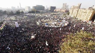 في ميدان التحرير حيث بدأت الثورة في 25 كانون الثاني 2011، احتشد عشرات الآلاف بعد صلاة الجمعة، وكذلك أمام قصر الاتحادية الرئاسي حيث كانت نظمت احتجاجات في تشرين الثاني 2012. وأمام القصر رفعت لافتات كتب فيها: "لا لحكومة الإخوان المسلمين الفاسدة" و"عامان بعد الثورة، أين العدالة الاجتماعية".