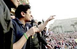 “I want to tell every mother, every father who lost a son, I’m sorry. It’s not our fault, I swear, it’s not our fault, it’s the fault of everyone who was in power and held on to it,” he said. Ghonim announced Tuesday that he was on his way to the square in a tweet to his followers, saying: “Egyptians are making history.”