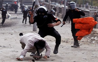 وهاجم رجال الامن مئات من المتظاهرين على جسر قصر النيل المؤدي إلى ميدان التحرير بوسط القاهرة، بعدما أدوا صلاة الغائب على أرواح ضحايا أحداث "ثورة 25 يناير" التي حصلت قبل سنتين وأرواح آخرين قضوا في الأيام الاخيرة.
