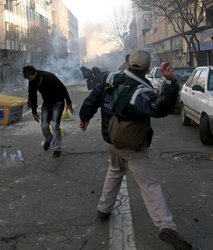 Tens of thousands of protesters clashed with security forces along some of Tehran's main boulevards, which were shrouded in clouds of tear gas in scenes that recalled the chaos after the disputed re-election of President Mahmoud Ahmadinejad in June 2009. A pro-government news agency reported one bystander killed by gunfire.